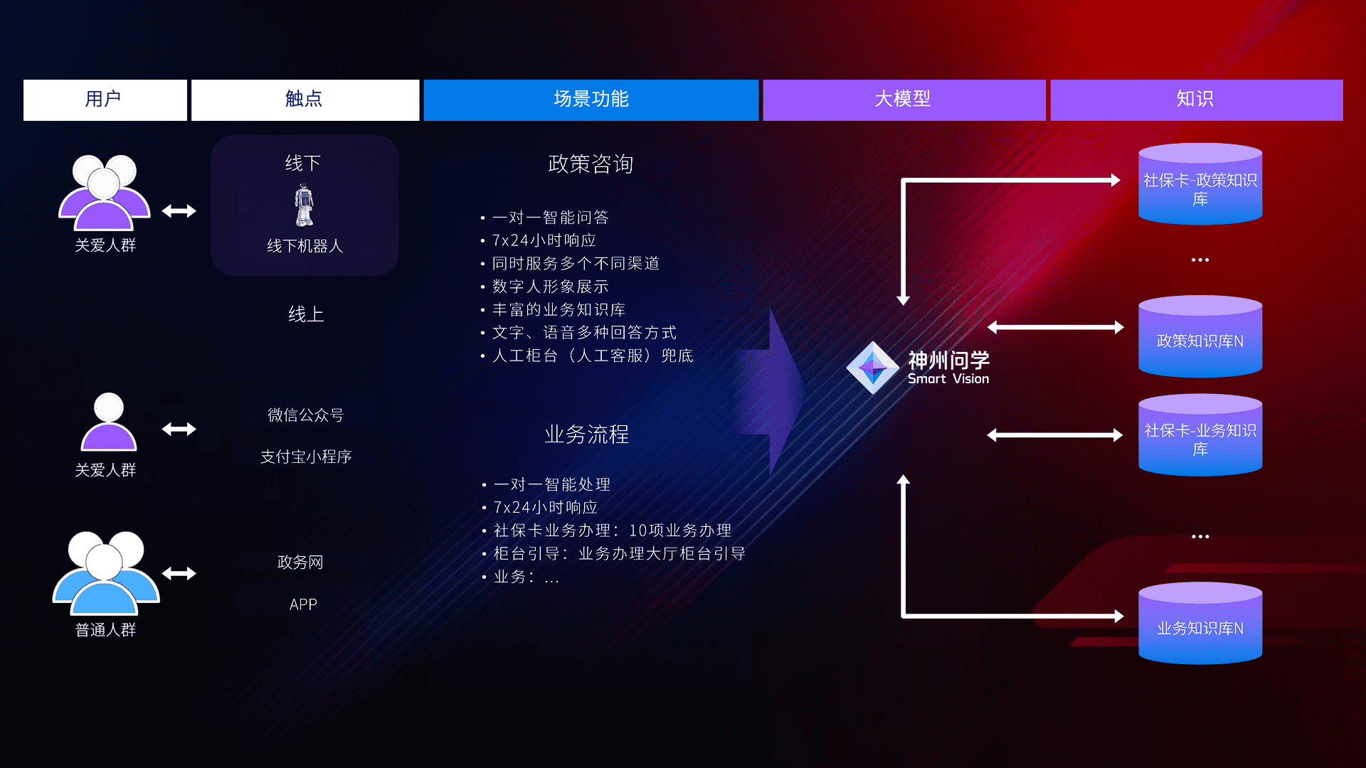 • 线上线下全覆盖:线上提供微信公众号、、、、支付宝小程序、、政务网、、、app多种渠道,,,与线下机器人形成完整服务体系。。。。