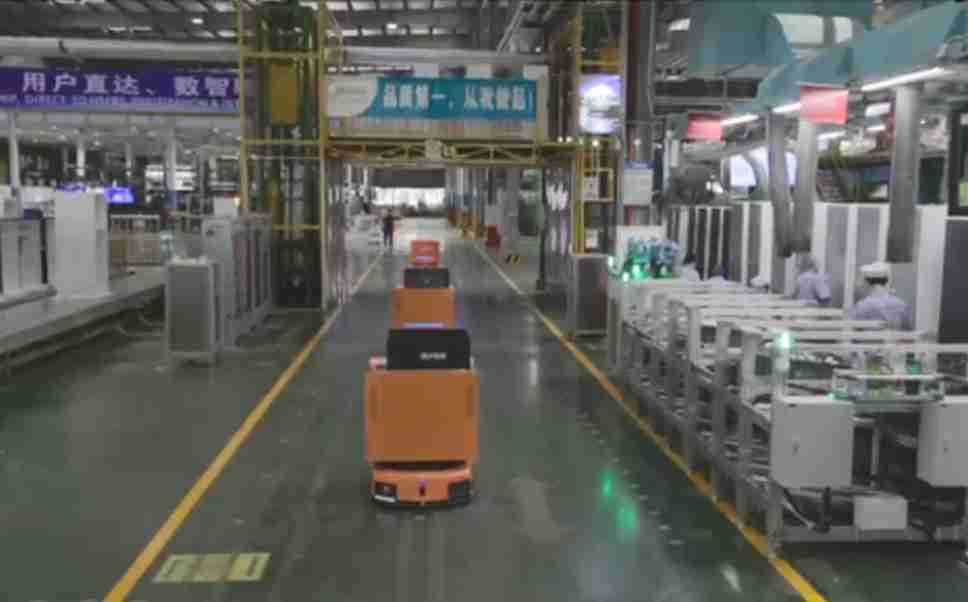 为车载冰箱物流配送打造的智能解决方案,,包含产中物流通过潜伏举升AMR搬运至线边,,,产后成品物流智能仓储,,流程包含产中物流智能齐套入库,,,,线边安灯叫料AMR智能配送至线边,,,,成品入库、、、、出库,,,通过无人堆高车机器人,,,,智能仓储管理替代人工作业管理,,,,实现更高存储、、、更高效率、、、更具柔性化的解决方案。。。。